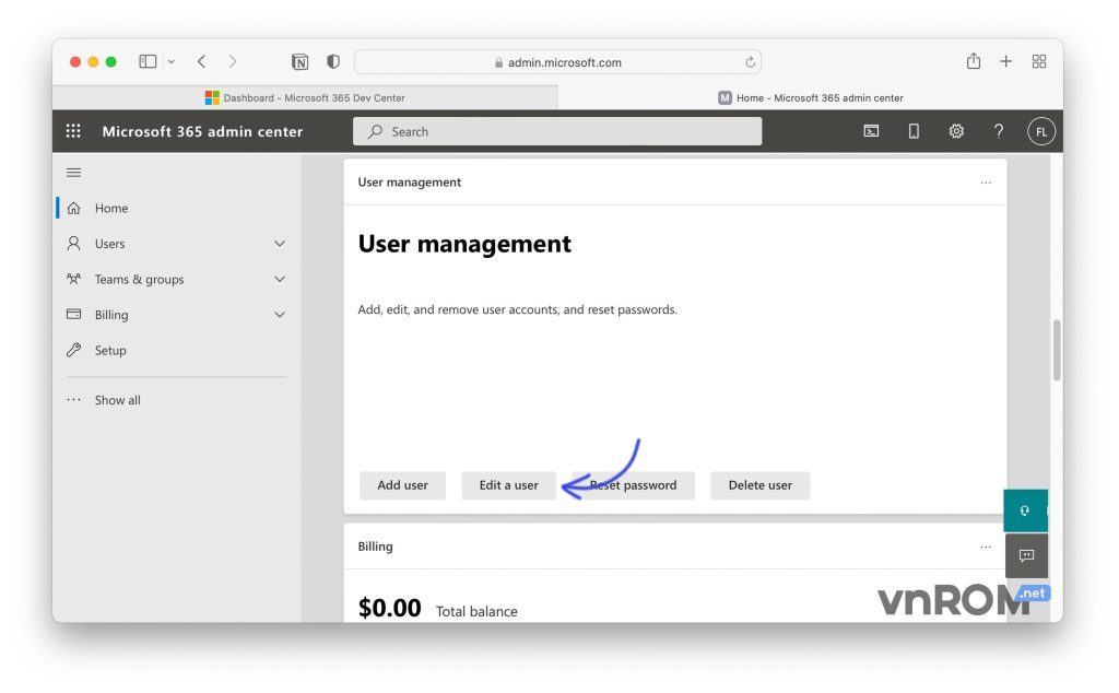 Bước 11: Truy cập vào trang admin.microsoft.comarrow-up-right và đăng nhập tài khoản vừa tạo ở Bước 7 (tài khoản có domain name tự tạo – VD: demo@vnrom.onmicrosoft.com)