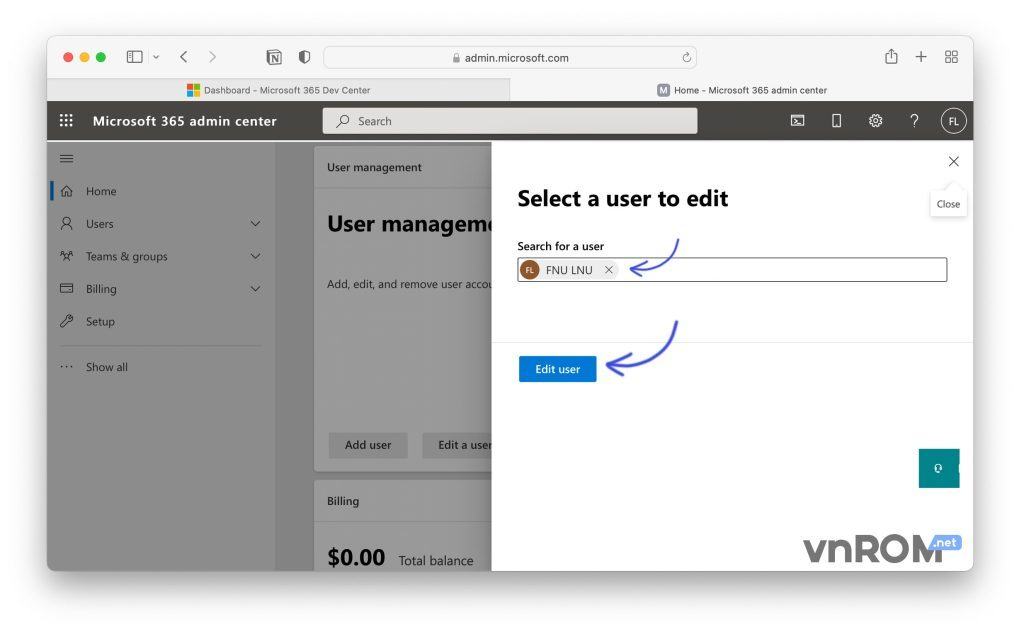 Bước 13: Chọn user muốn chỉnh sửa và chọn “Edit user