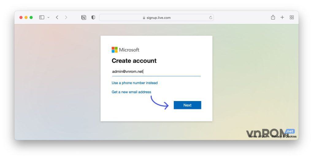 Bước 3: Đăng nhập bằng một tài khoản microsoft có sẵn (của riêng cá nhân) hoặc đăng ký tài khoản microsoft mới