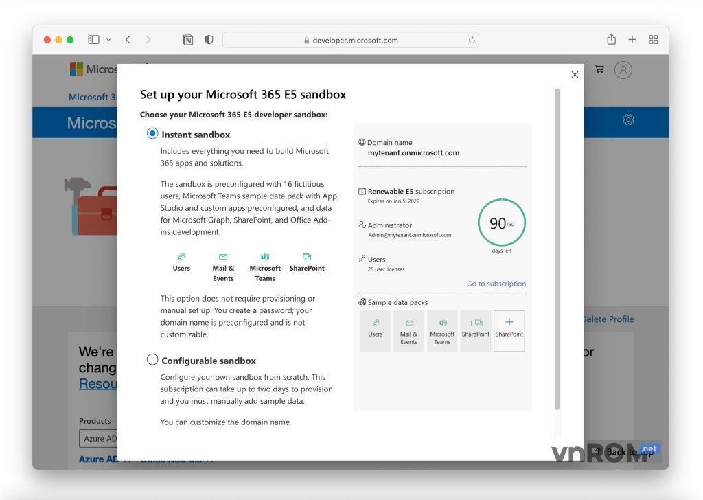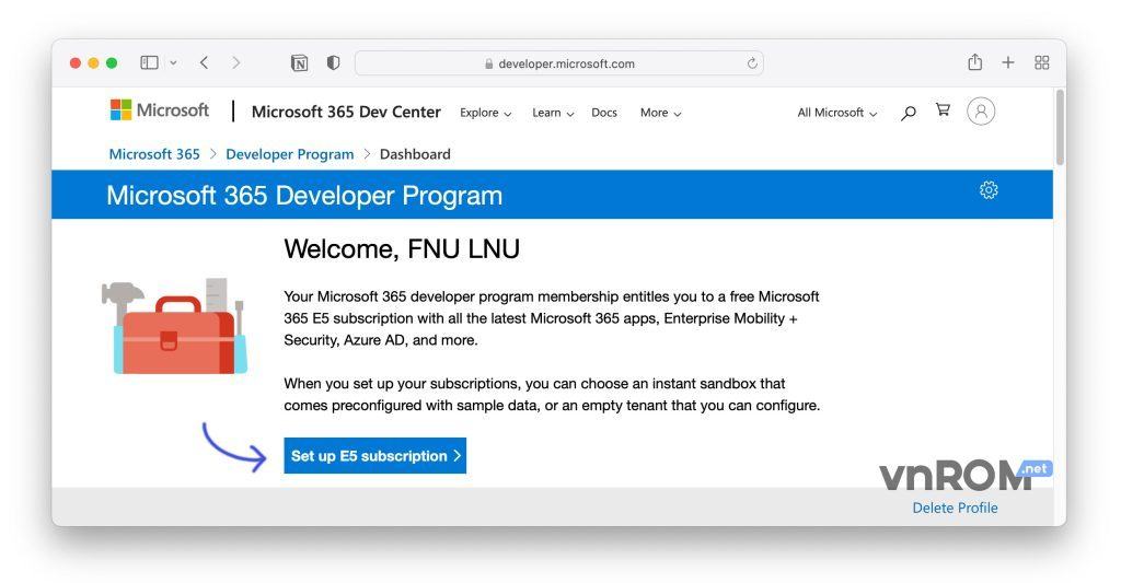 Bước 1: Truy cập vào Microsoft 365 Developer Programarrow-up-right
